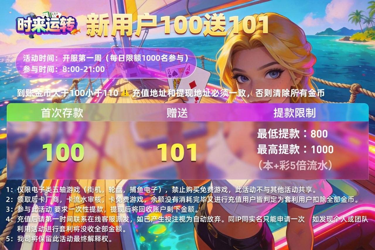 100+100最低提现800最高1000本+彩5倍水